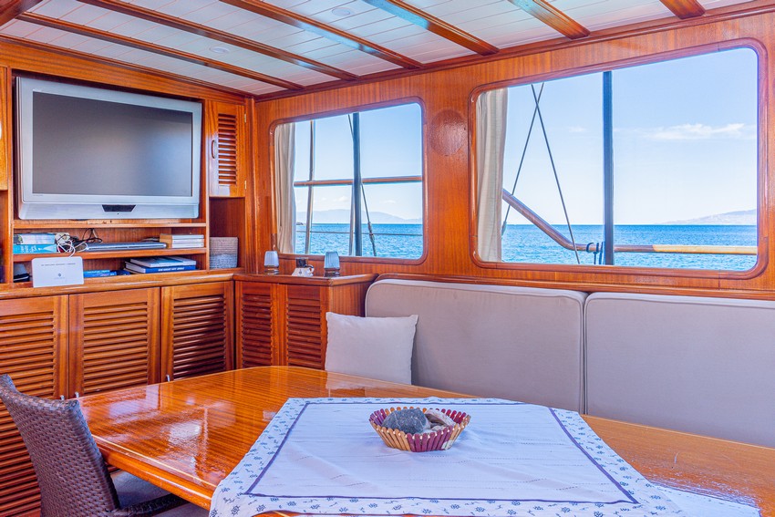 Avrasya is equipped with a fully functional kitchen, well-appointed indoor and outdoor dining areas, and an air-conditioned lounge featuring a TV, DVD player, and music system. Guests can soak up the sun on the expansive deck, complete with plenty of sunbathing mats for everyone.