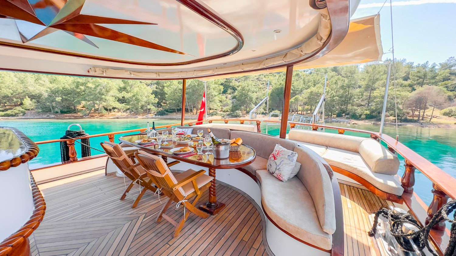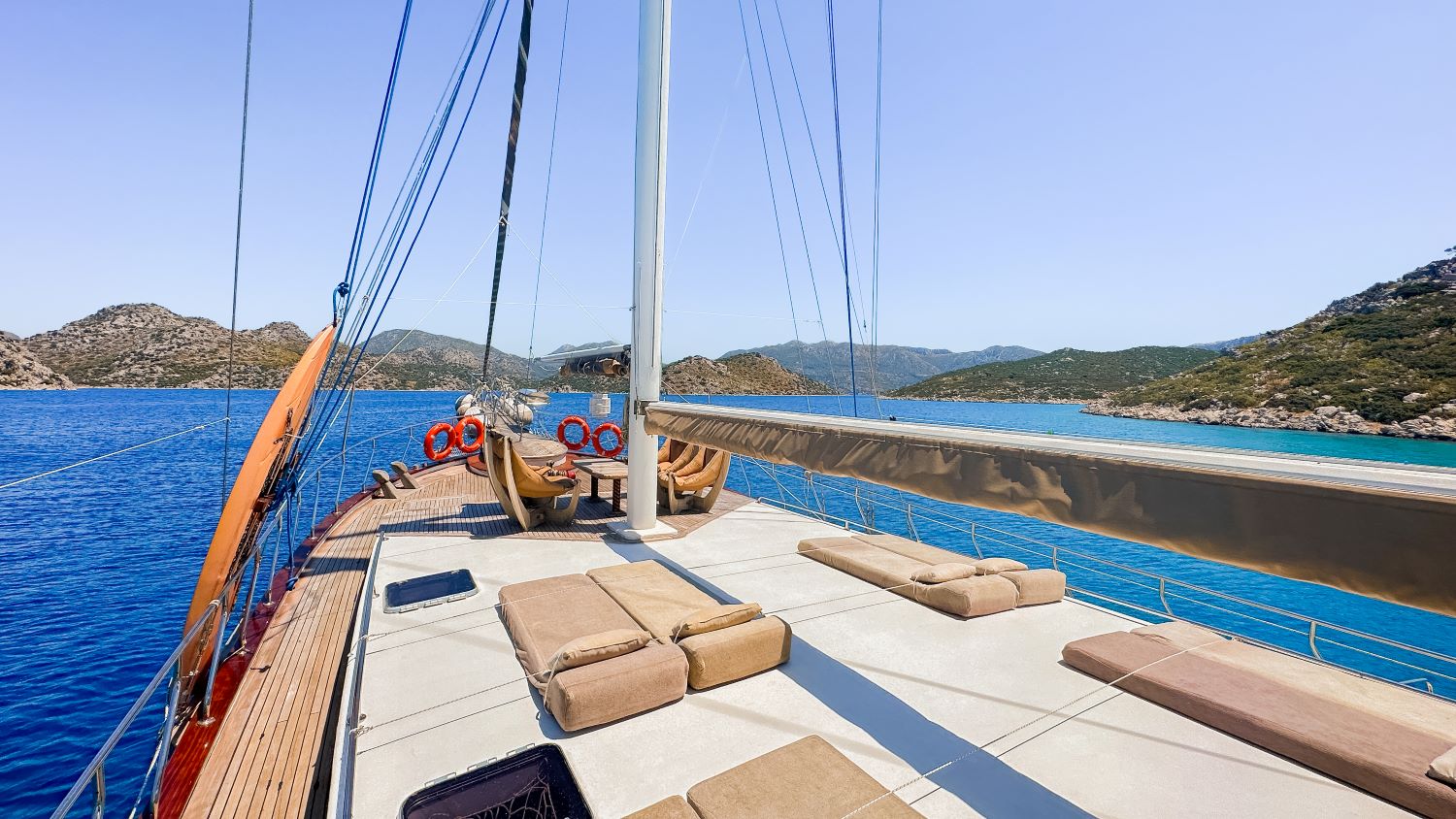 With Marmaris as its base port, and an option to board in Bodrum or Gocek, Blu Dream gulet offers custom itineraries that explore the beauty of Turkey’s coastlines. Saturday afternoons mark the beginning of weekly charters. On request shorter charters is possible in the low season. The dedicated crew of 4 ensures an enjoyable journey for all, combining excellent service with a welcoming atmosphere. Whether it’s a family trip or a group adventure, Blu Dream promises an unforgettable luxury gulet cruise experience.