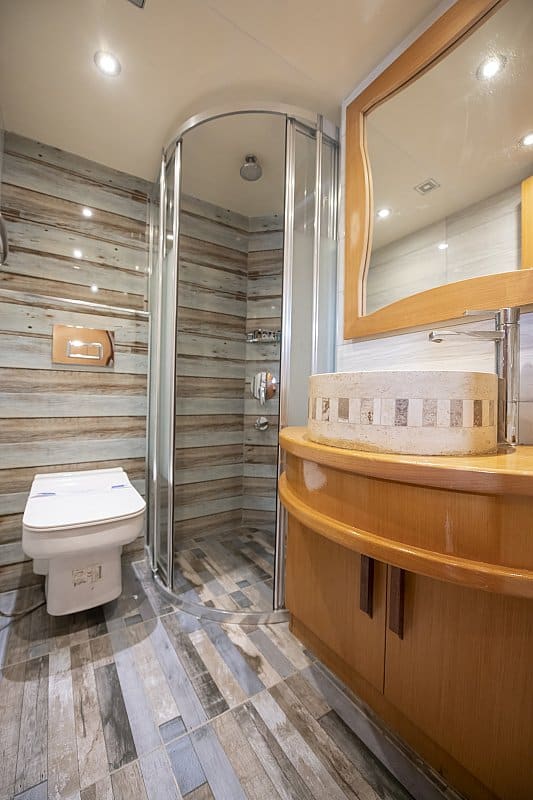 Luxury Blu Dream gulet is available for private gulet charters along the Turkish coast, combining modern comfort with flexible accommodation. Her four cabins comfortably host up to 10 guests, each with a private en-suite bathroom featuring a shower and toilet.