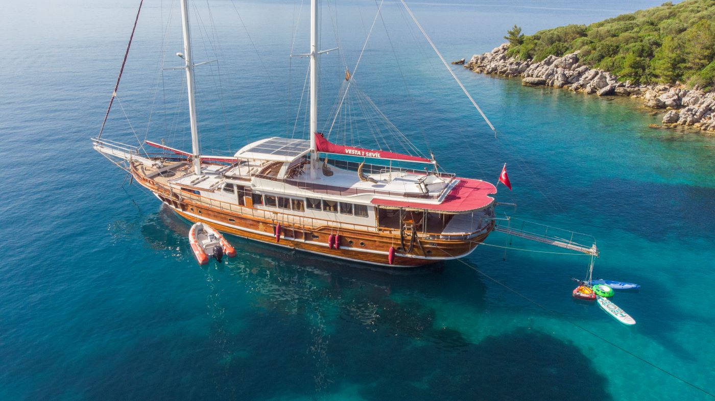 The charter itineraries are customizable, focusing on scenic routes around Turkey’s breathtaking coastline. In case of departure from Marmaris we suggets as navigation area Bozburun and Hisaronu gulf. Weekly charters for Vesta Sevil gulet start on Saturday afternoons, with the potential for shorter trips in the low season.