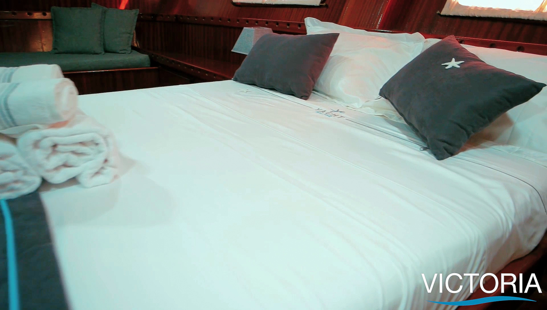 The Gulet Victoria is an elegant blend of of traditional craftsmanship and modern comfort, offering a personalized sailing experience through the beautiful coasts of Sardinia. Its 6 cabins, made of fine wood, create a classic and luxurious feel. The indoor salon features dining and relaxation spaces, while the aft deck provides an alfresco dining experience and cushioned seating. A sunbathing area on the front deck allows for private relaxation under the Italian sun.