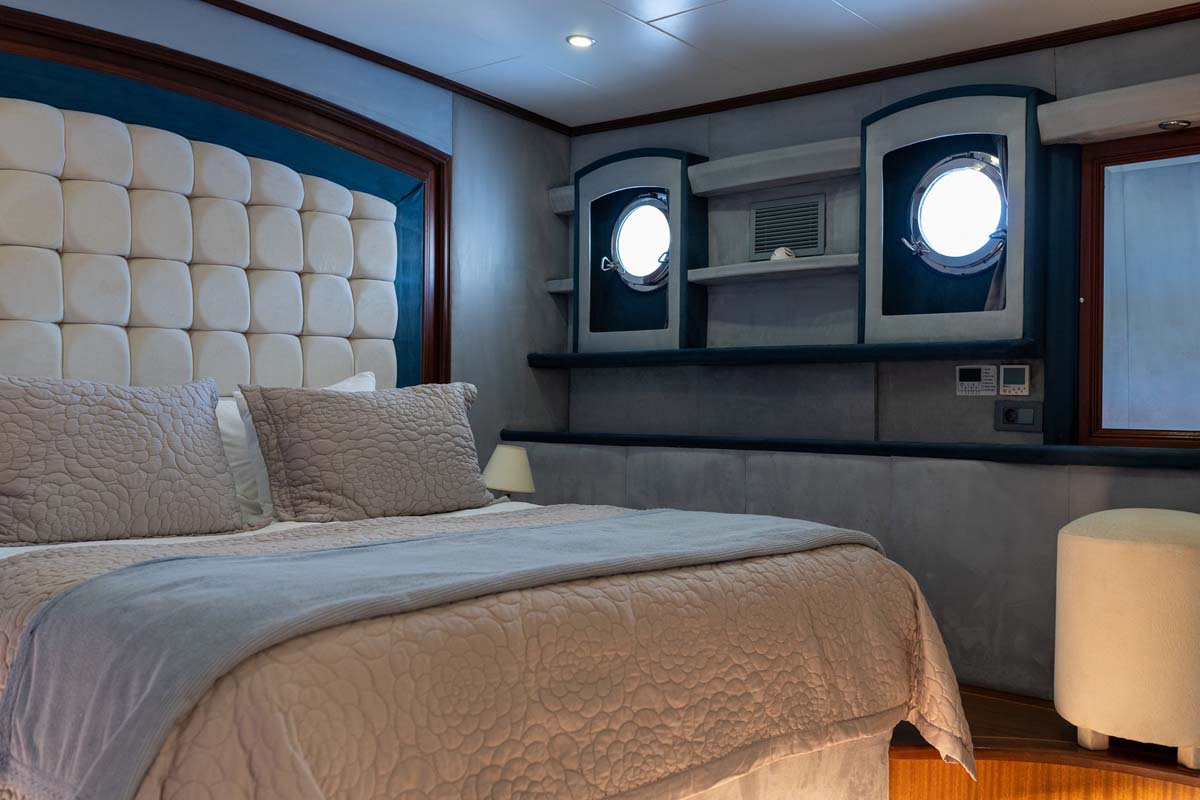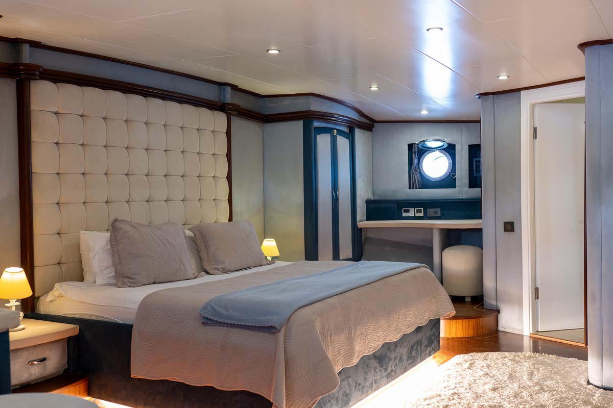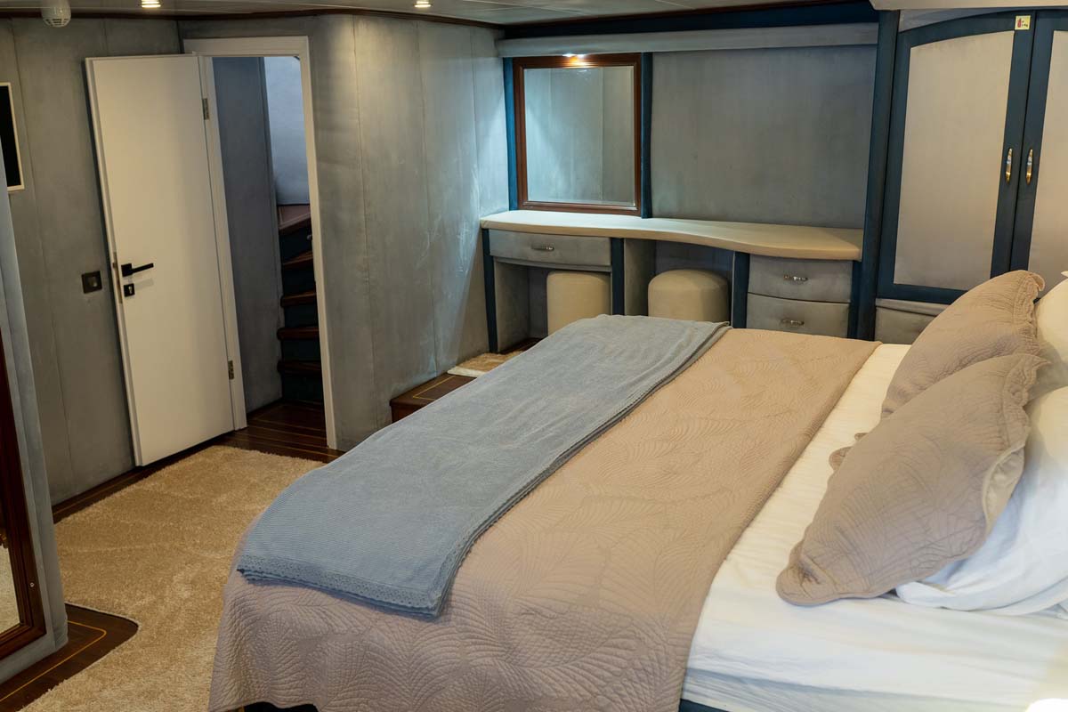 Il caicco Bella mare è un charter da sogno con di 38 metri notevoli sia per il suo moderno design esterno ed eleganti interni. Bella mare offre un’esperienza di navigazione sofisticata e confortevole per un massimo di 12 ospiti speciali. Ristrutturato nel 2023, lo yacht presenta 2 cabine master decorate in grigio-blu in stile contemporaneo. Nello stesso tono anche le 4 comode cabine doppie con letto francese, ciascuna con bagno privato. Tutte le cabine sono dotate di aria condizionata, TV e impianto stereo.