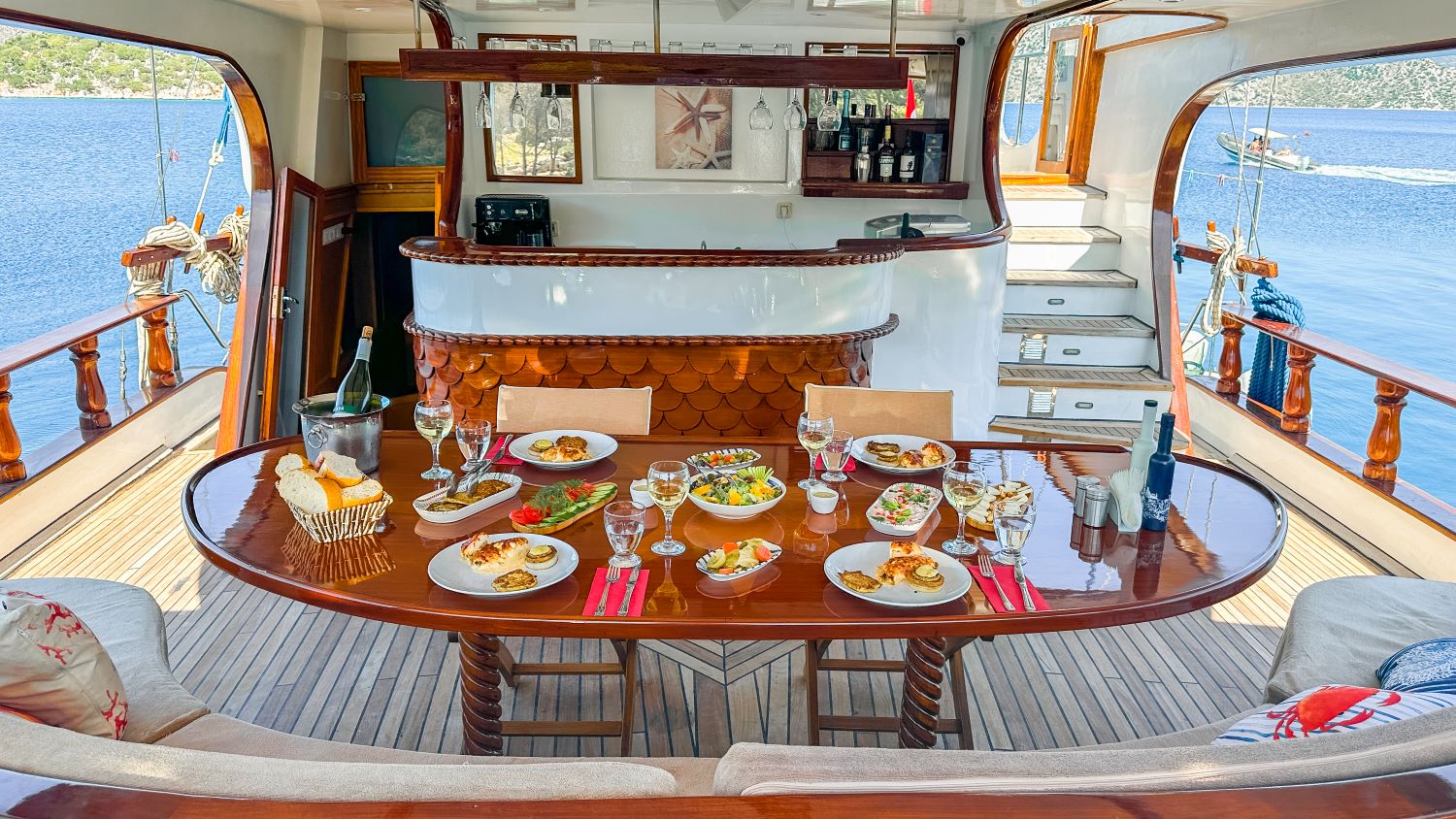 L’ampia selezione di sport acquatici del caicco, come snorkeling, sci nautico e wakeboard, è un punto forte per gli ospiti avventurosi. I pasti a bordo sono un’esperienza deliziosa, con un menù di pensione completa ricco di pesce, carne e prodotti freschi.