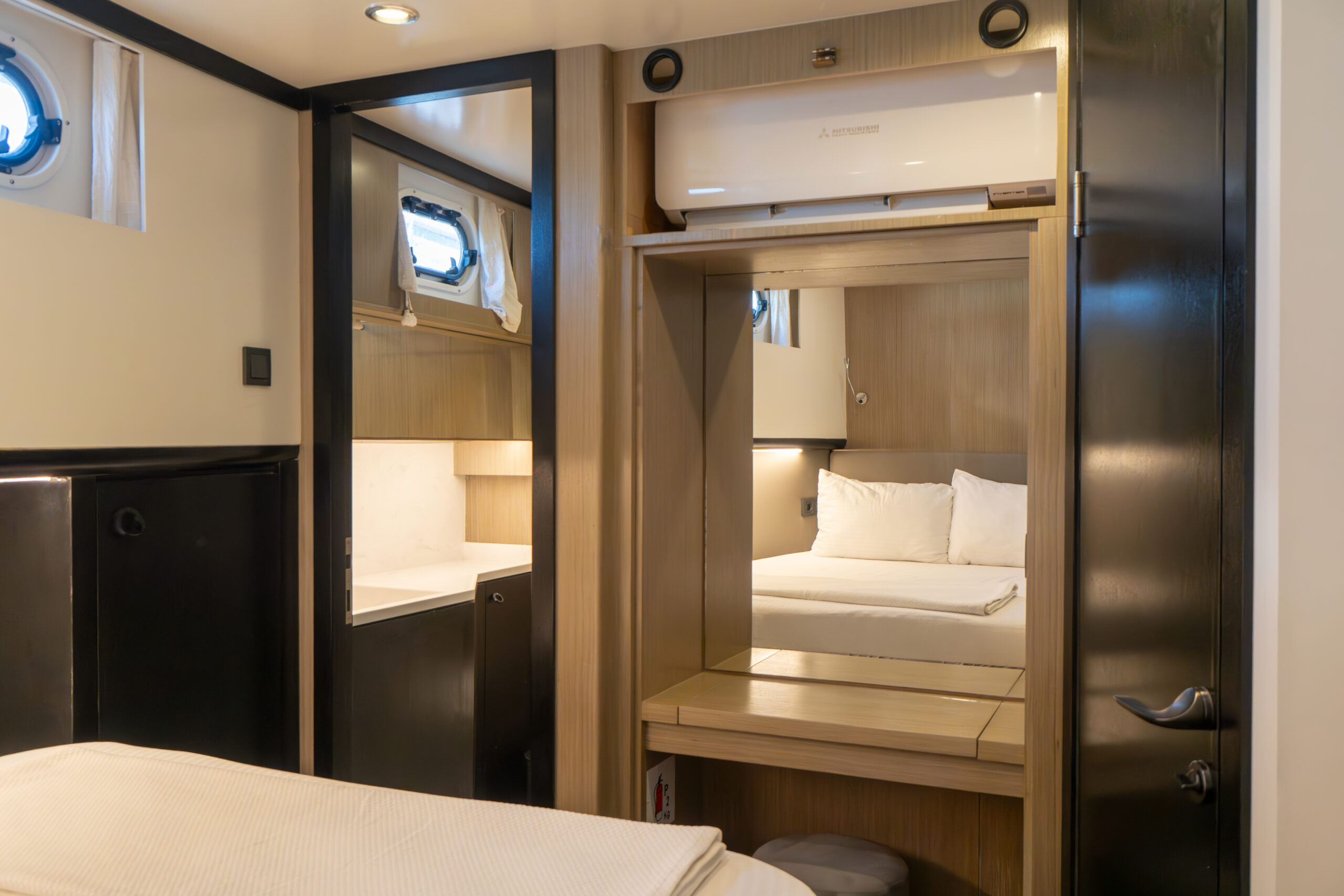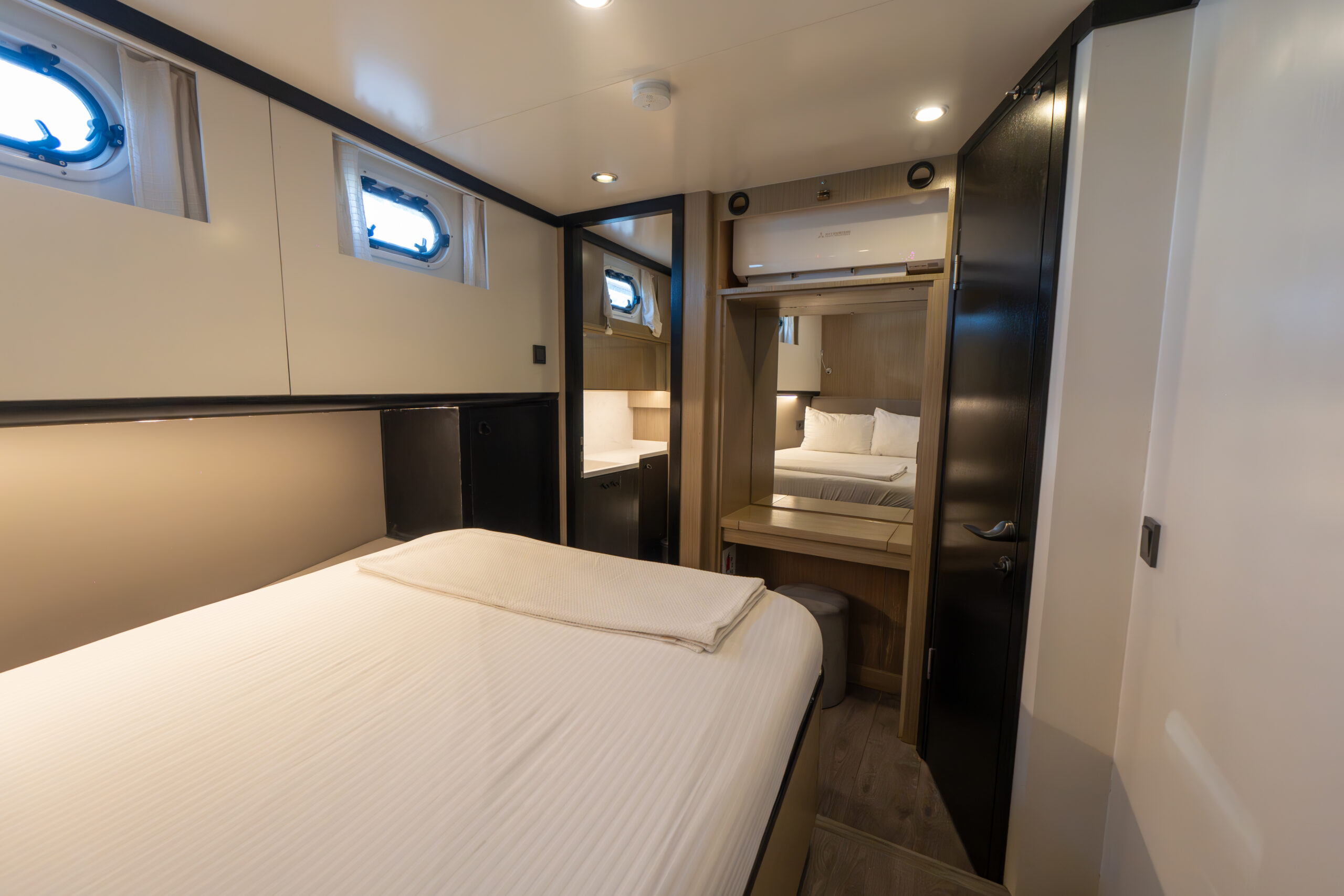 Offrendo un mix di comfort moderno e sistemazioni spaziose eccellente consente ai passeggeri di godersi il tempo a bordo con il massimo comfort. Ogni cabina dispone di doccia e servizi igienici privati, garantendo privacy e praticità. Tutte le cabine e il salone interno hanno l’aria condizionata. Inoltre, a bordo saranno a vostra disposizione giochi acquatici tra cui due canoe, due paddle board e due Seabob.
