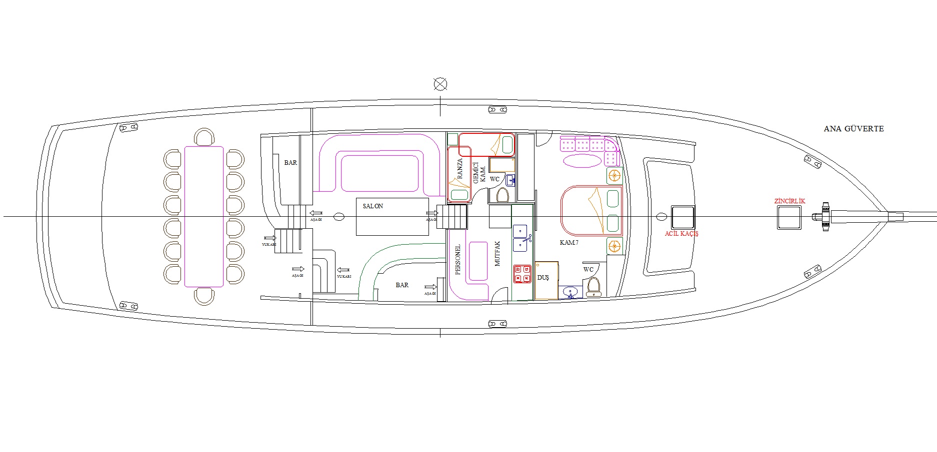 Ampi spazi eserni con tavolo da pranzo in poppa e una zona relax al ombra con tavolo anche in prua, lo rendono ideale per gruppi numerosi. Il caicco Ugur offre un’atmosfera accogliente per i nostri ospiti speciali che cercano un’esperienza familiare a bordo.