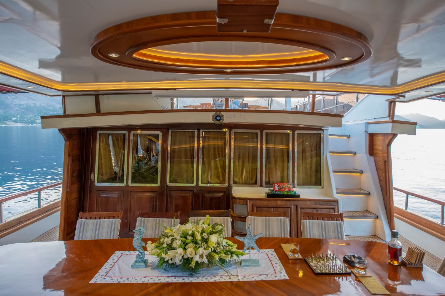 Il caicco Vesta Sevil offre un’atmosfera accogliente per i nostri ospiti speciali che cercano un’esperienza familiare a bordo. L’area lounge di poppa è perfetta per socializzare e il flybridge offre uno spazio rilassante sia per fare sport o una cena speciale con vista sul tramonto. Con la sua disposizione incentrata sul comfort, il caicco Vesta Sevil è l’ideale per famiglie, amici o gruppi in cerca di una crociera informale con un servizio di altro livello.