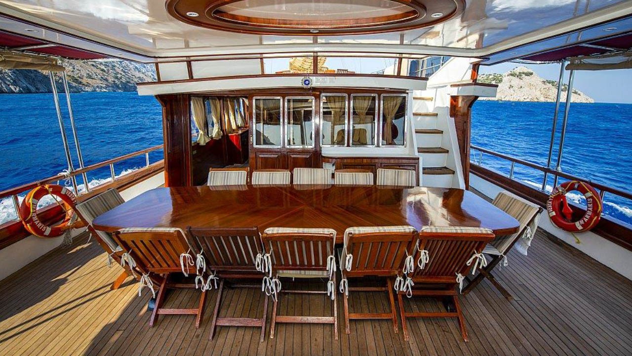 Che si tratti di concedersi prelibatezze turche locali o di sorseggiare un drink ammirando il tramonto, offre una bellissima esperienza di navigazione in caicco Gli ospiti amano di questo caicco l’ampia scelta di sport acquatici, ampi spazi, lettini divisi su 2 ponti, grandissima cusciniera al ombra e ottima cucina a bordo.