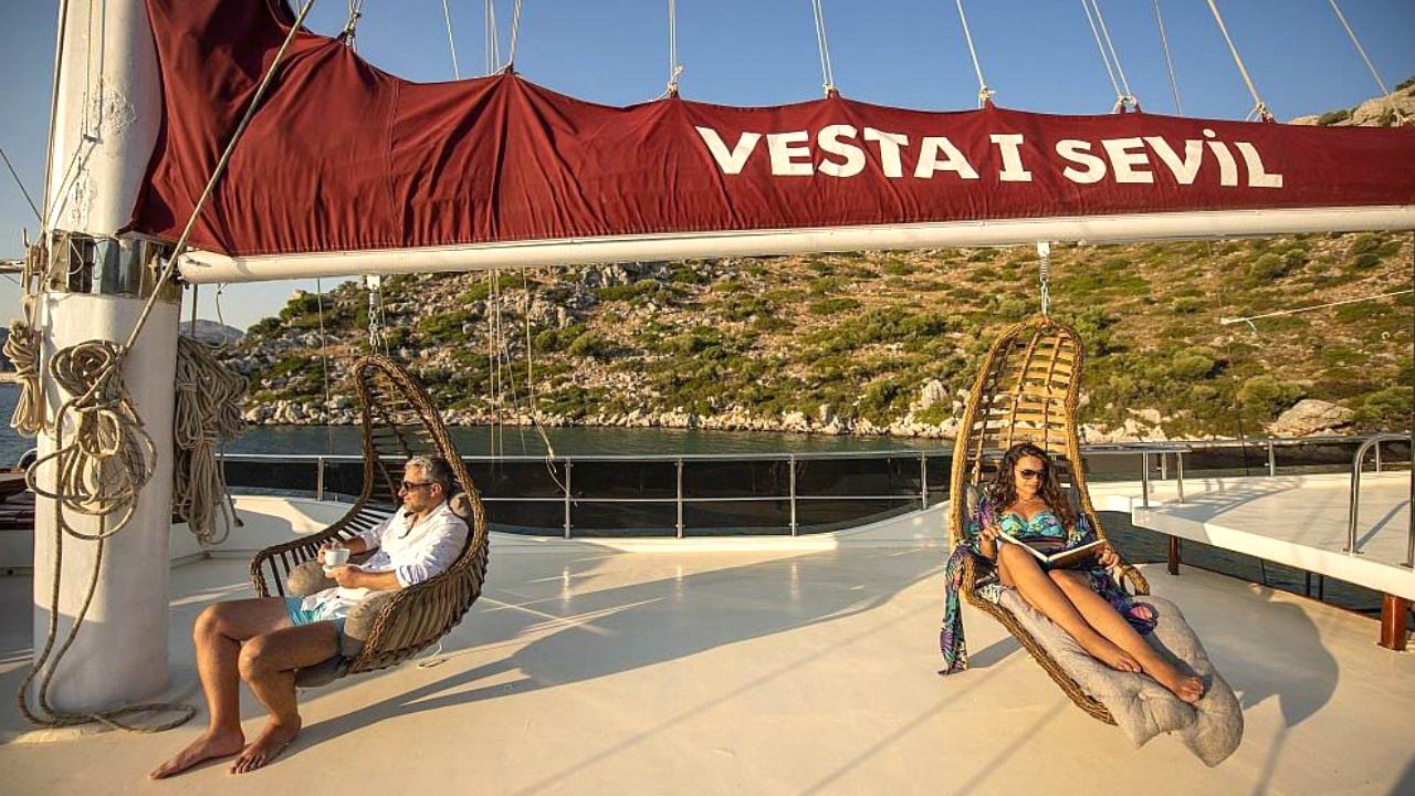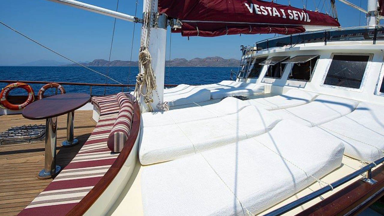 Il caicco Vesta Sevil è uno yacht classico di 33 metri costruito in stile tradizione in Turchia. Dotato di uno dei più grandi flybridge e un ampio ponte, è desisamente tra migliori opzioni per una crociera confortevole per gruppi numerosi. Ad eccezione del flybridge in caicco Vesta Sevil, si aggiungono ampi spazi al’aperto e interno per una vacanza di relax e comodità. Costruito nel 2004 e ristrutturato nel 2020, unisce tradizione, eleganza e funzionalità.