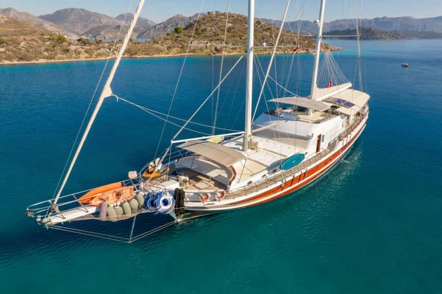 Con Marmaris come porto di base e un’opzione di imbarco a Bodrum o Gocek, il caicco Caicco S Nur Taylan offre itinerari personalizzati che esplorano la bellezza delle coste della Turchia. Il sabato pomeriggio segna l’inizio dei charter settimanali, con charter più brevi possibili in bassa stagione. L’equipaggio dedicato di 6 persone assicura un viaggio piacevole per tutti, combinando un servizio eccellente con un’atmosfera accogliente. Che si tratti di un viaggio in famiglia o di un’avventura di gruppo, il Caicco S Nur Taylan promette un’esperienza di crociera in caicco di lusso indimenticabile.