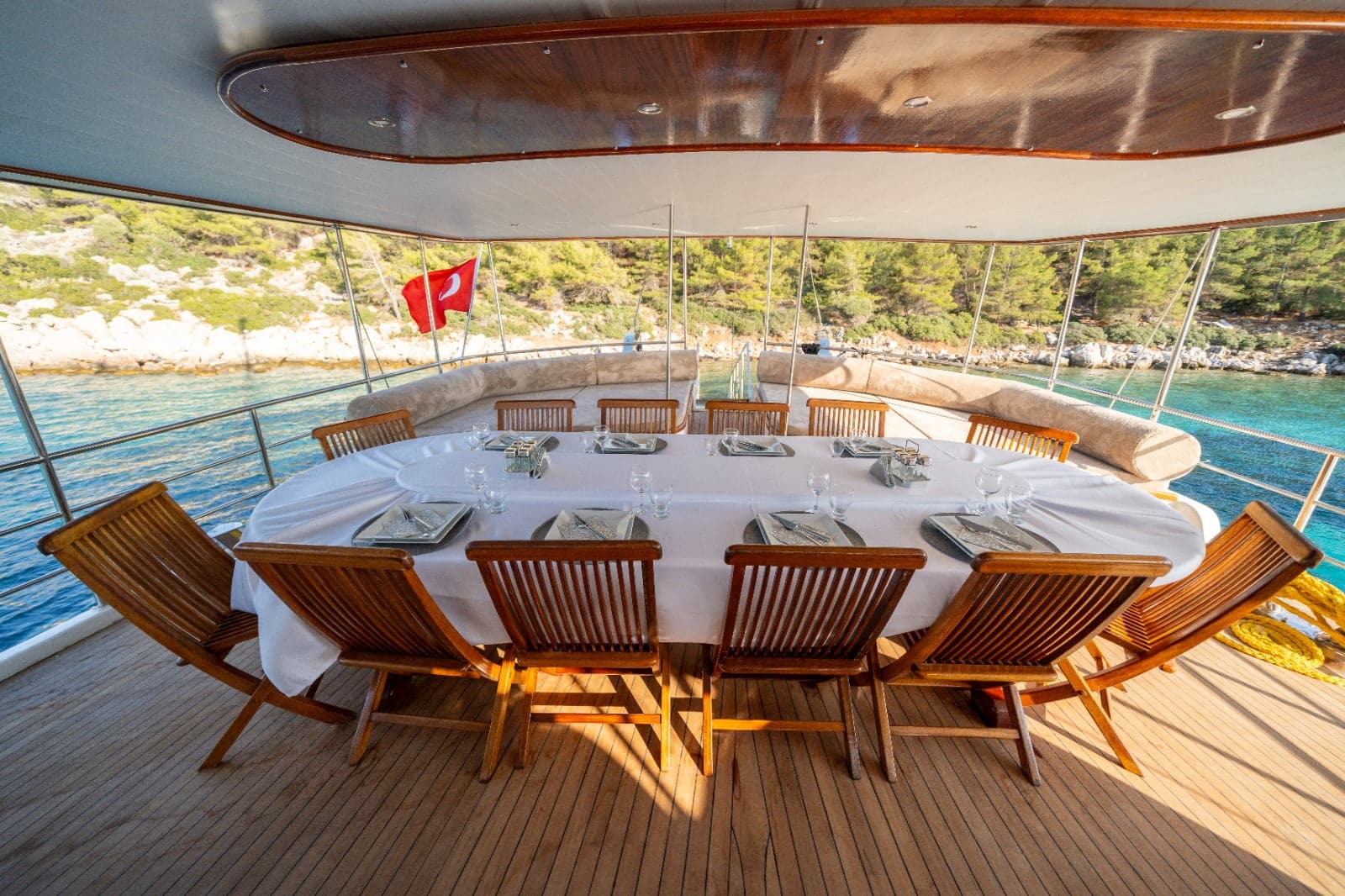 Con Marmaris come porto di base il caicco Dogukan Arda offre itinerari personalizzati che esplorano la bellezza delle coste della Turchia. Il sabato pomeriggio segna l’inizio dei charter settimanali. Charter più brevi sono possibili in bassa stagione. L’equipaggio dedicato di 4 persone assicura un viaggio piacevole per tutti, combinando un servizio eccellente con un’atmosfera accogliente. Che si tratti di un viaggio in famiglia o di un’avventura di gruppo, il Caicco Dogukan Arda promette un’esperienza di crociera in caicco di lusso indimenticabile.