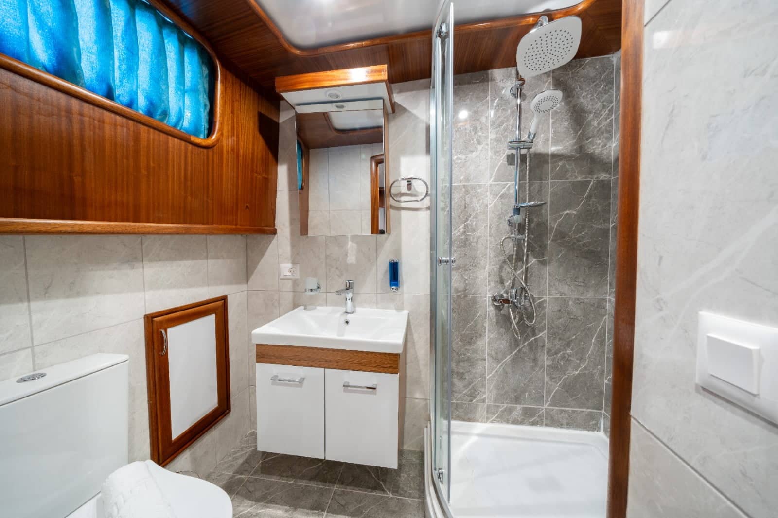 Il caicco Dogukan Arda erfetto per charter privati ​​lungo le coste della Turchia. Offrendo un mix di comfort tradizionale e sistemazioni spaziose, le sue 6 cabine offrono opzioni flessibili per un massimo di 14 ospiti. Ogni cabina dispone di doccia e servizi igienici privati, garantendo privacy e praticità. Tutte le cabine hanno l’aria condizionata che può essere accesa per circa 8 ore di notte.