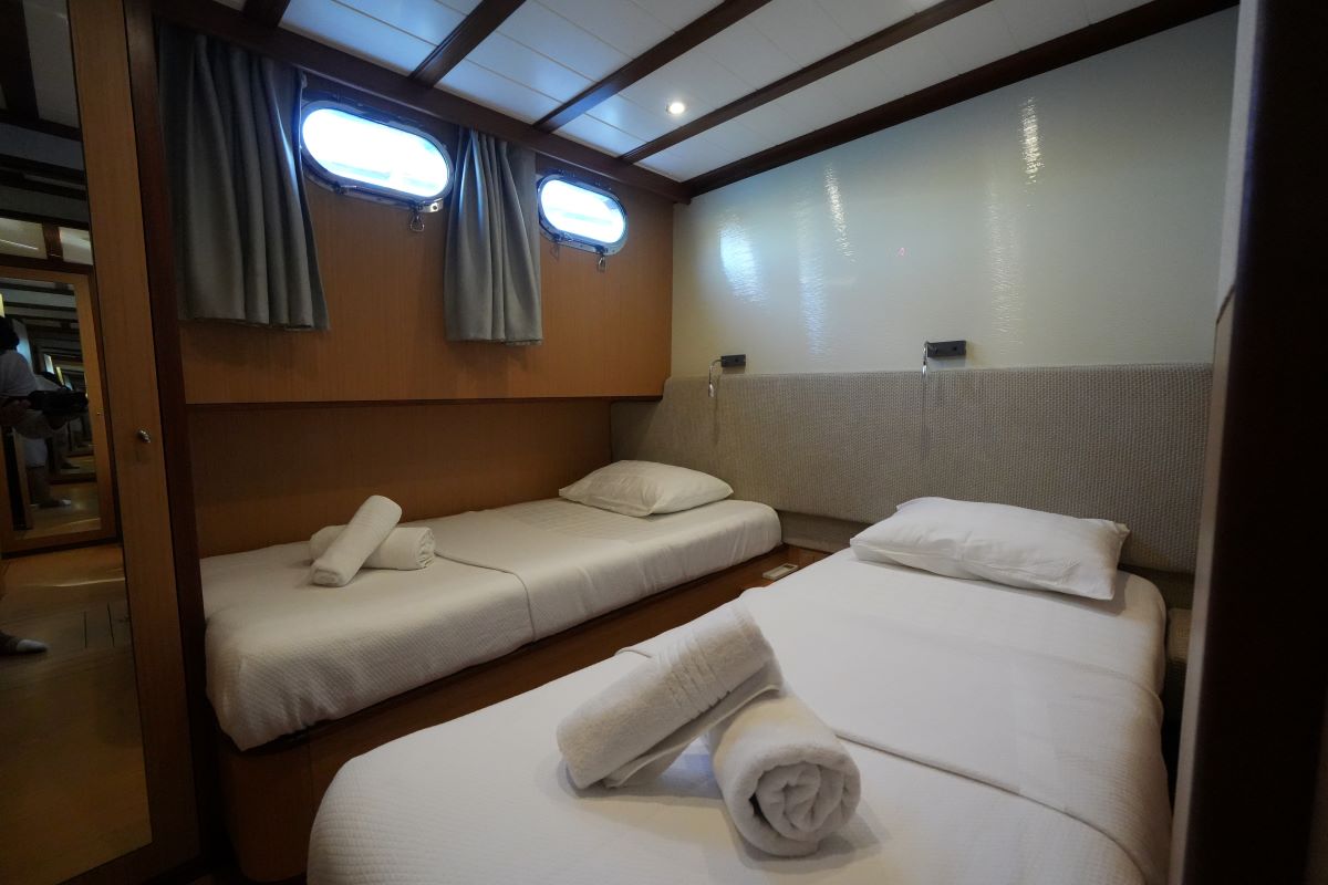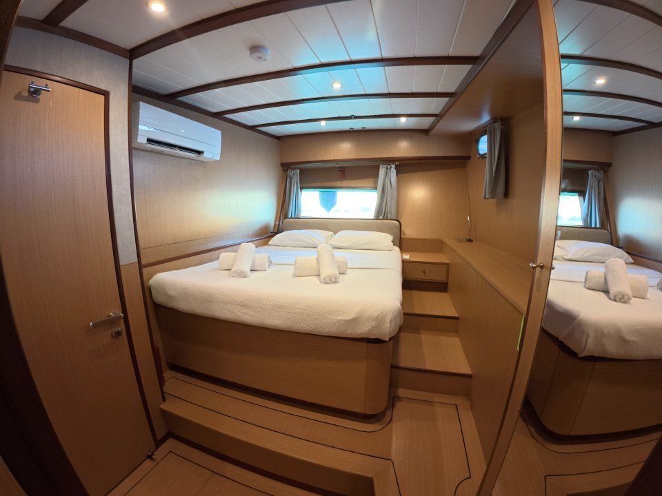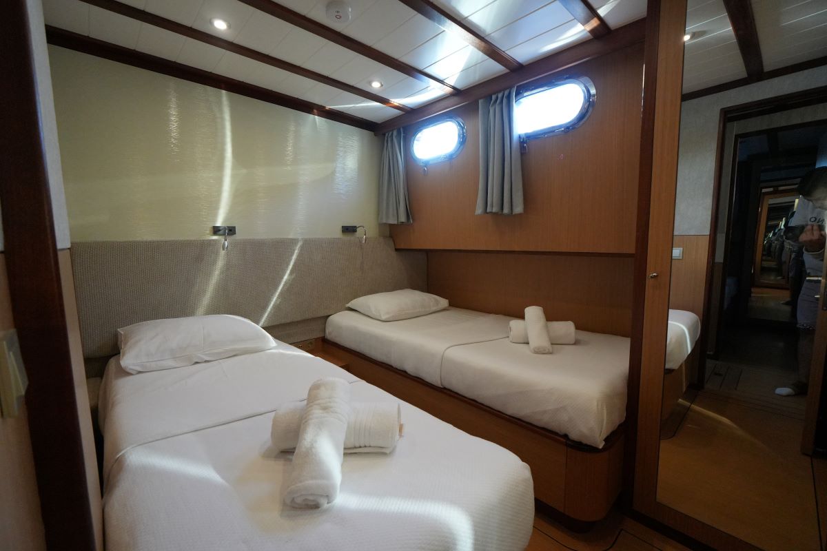 Il Caicco Giulia è perfetto per charter privati lungo nella baia di Gokova, lungo la costa turca sul Egeo o le isole greche del Dodecaneso. Offrendo un mix di comfort moderno e sistemazioni spaziose, le sue 6 cabine offrono opzioni flessibili per un massimo di 12 ospiti. Ogni cabina dispone di doccia e servizi igienici privati, garantendo privacy e praticità. Tutte le cabine hanno l’aria condizionata che può essere accesa per circa 8 ore di notte.