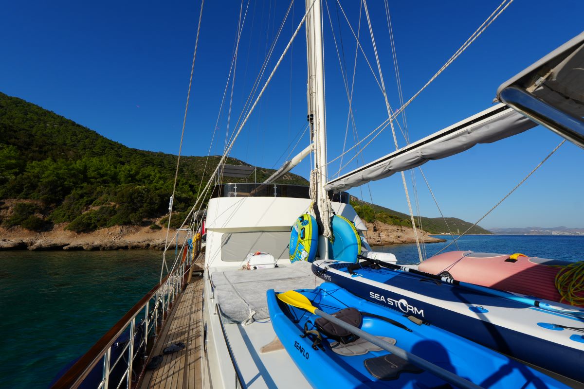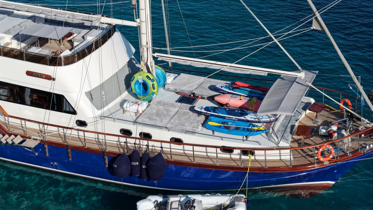 Con Bodrum come porto di base, il Caicco Giulia offre itinerari personalizzati. Potrete esplorare la bellezza delle coste della Turchia o le vicine isole greche. Il sabato pomeriggio segna l’inizio dei charter settimanali. Charter più brevi sono possibili in bassa stagione. L’equipaggio dedicato di 4 persone assicura un viaggio piacevole per tutti, combinando un servizio eccellente con un’atmosfera accogliente. Che si tratti di un viaggio in famiglia o di un’avventura di gruppo, il Caicco Giulia promette un’esperienza di crociera in caicco indimenticabile.