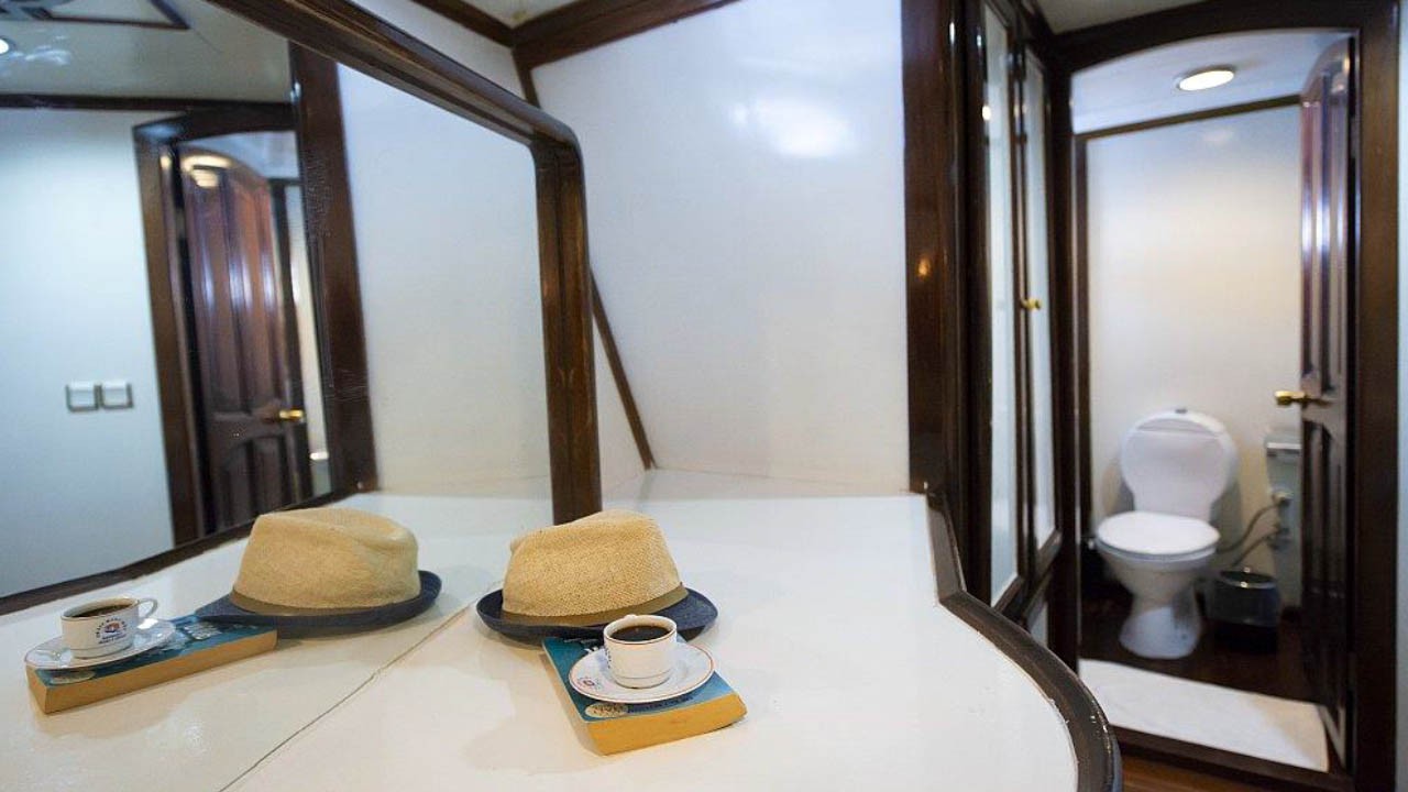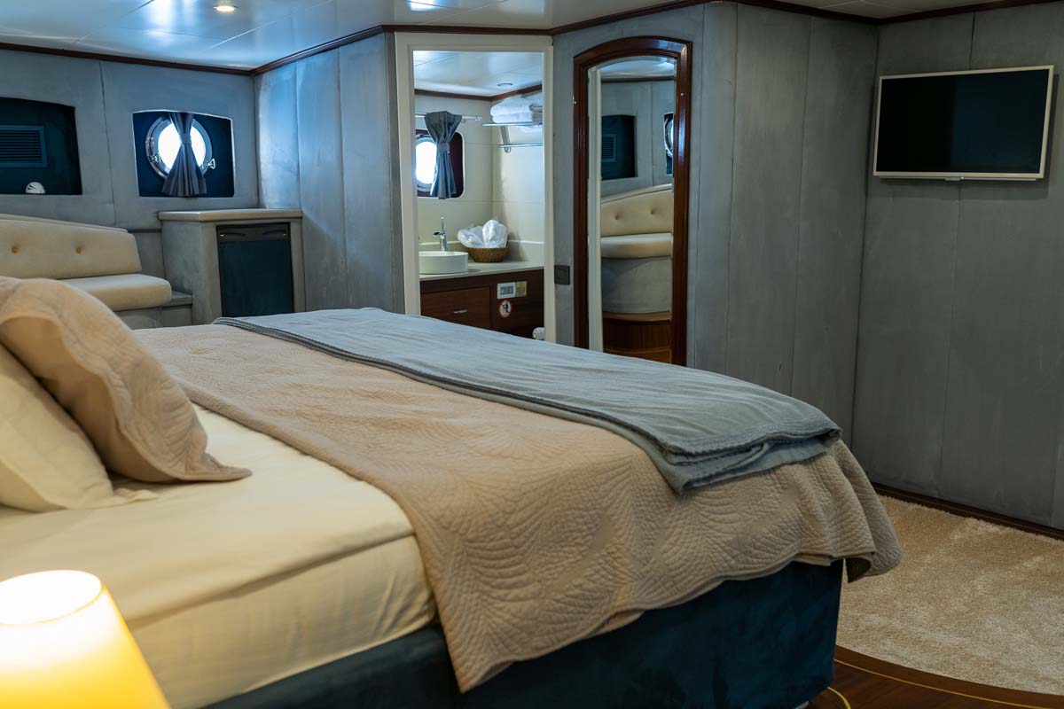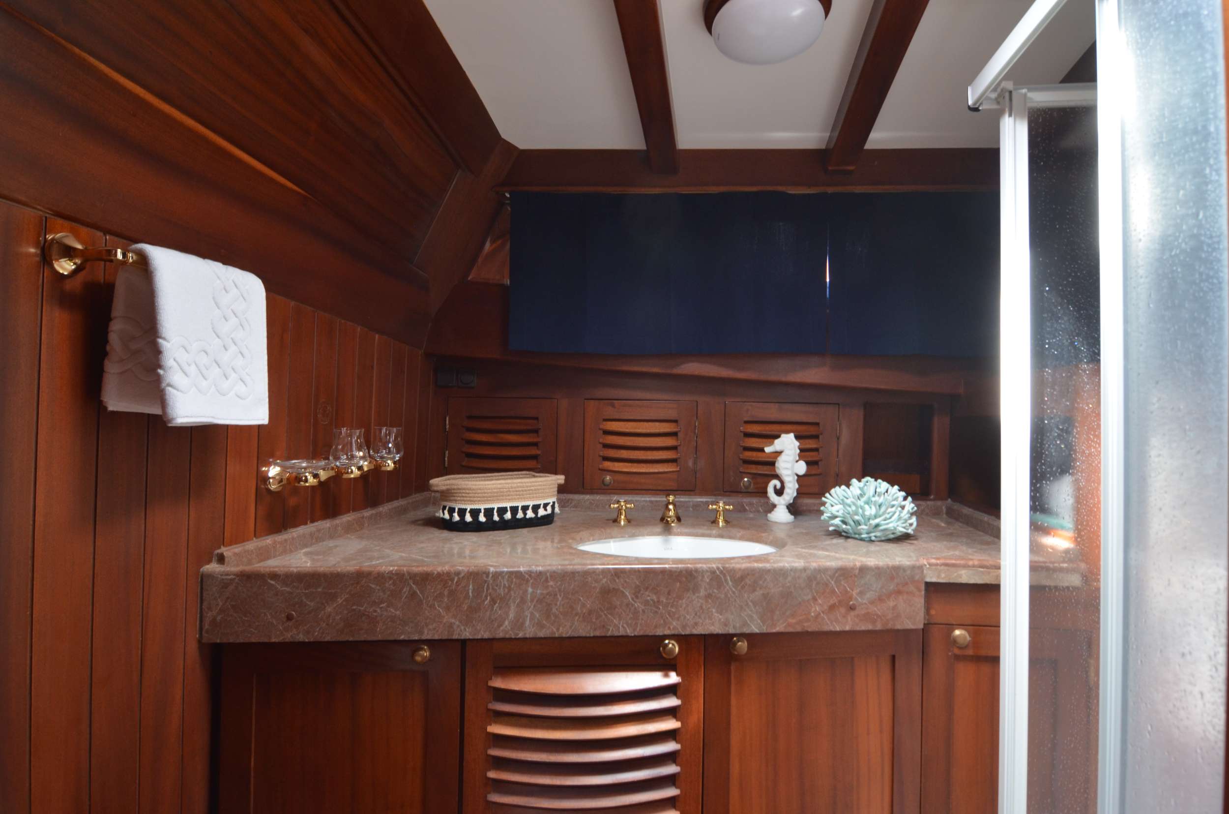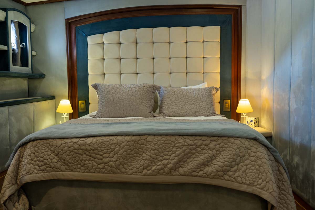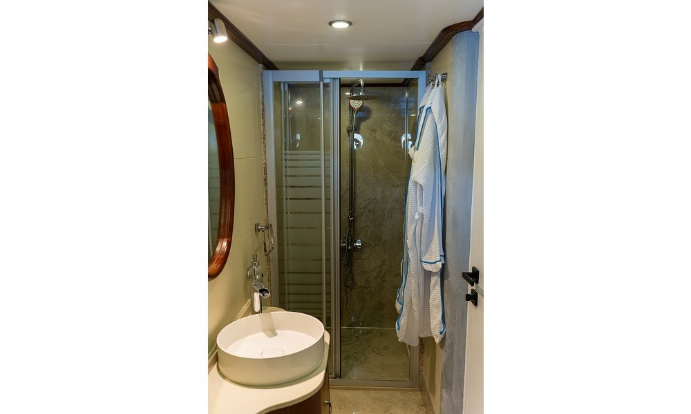Gulet charters are perfect for an intimate and exclusive vacation discovering the coasts of Italy. Offering a mix of modern comfort and spacious accommodations, its 4 cabins offer flexible options for up to 8 guests. Our guests can enjoy 1 aft master cabin with ensuite bathroom. Forward there is 1 twin cabin with ensuite bathroom 1 twin cabin with shared bathroom with 1 double cabin. All cabins have air conditioning that can be turned on for about 8 hours at night.