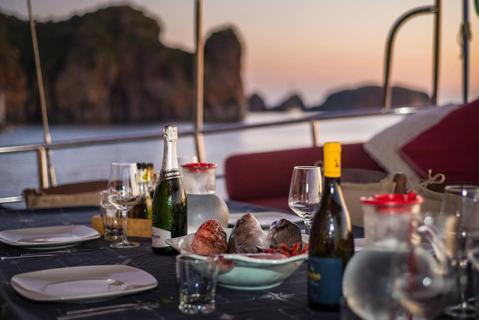 One of the joys of a gulet charter in Italy is the culinary experience. Enjoying freshly prepared Italian cuisine while cruising along the stunning coastline is unparalleled. Each meal celebrates local flavors and traditions paired with exquisite Italian wines.