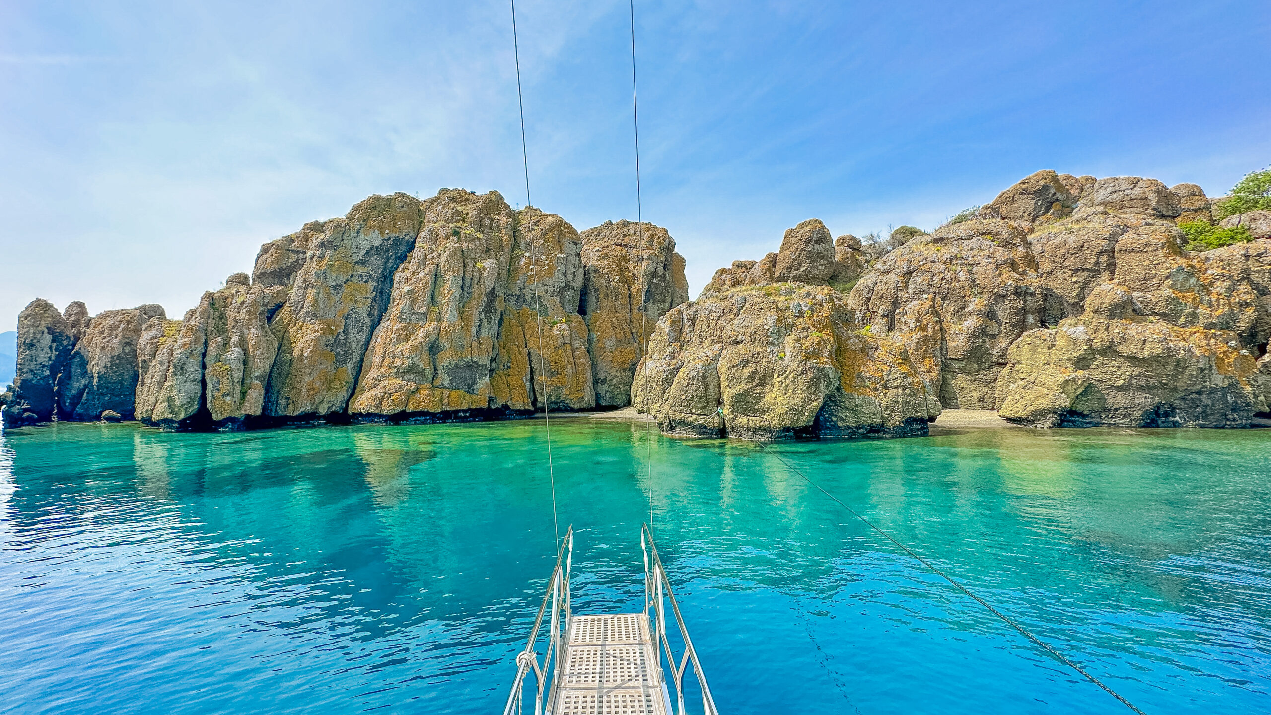 One of the highlights of Gokova Bay is without a doubt, the visit to Cleopatra Island. Legend has it that the sands here were brought over from Egypt for Cleopatra herself—a myth that adds a touch of romance to its already stunning beach.