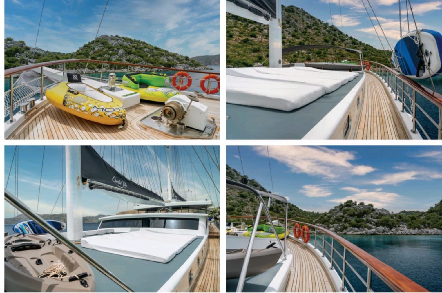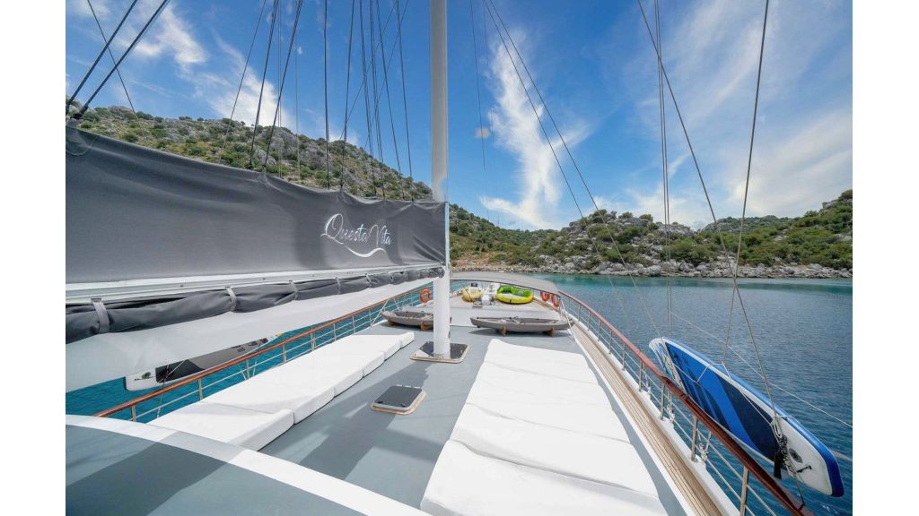 With Marmaris as its base port, and an option to board in Bodrum or Gocek, Questa Vita gulet offers custom itineraries that explore the beauty of Turkey’s coastlines. Saturday afternoons mark the beginning of weekly charters, with shorter charters possible in the low season. The dedicated crew of 5 ensures an enjoyable journey for all, combining excellent service with a welcoming atmosphere. Whether it’s a family trip or a group adventure, Questa Vita gulet promises an unforgettable luxury gulet cruise experience.